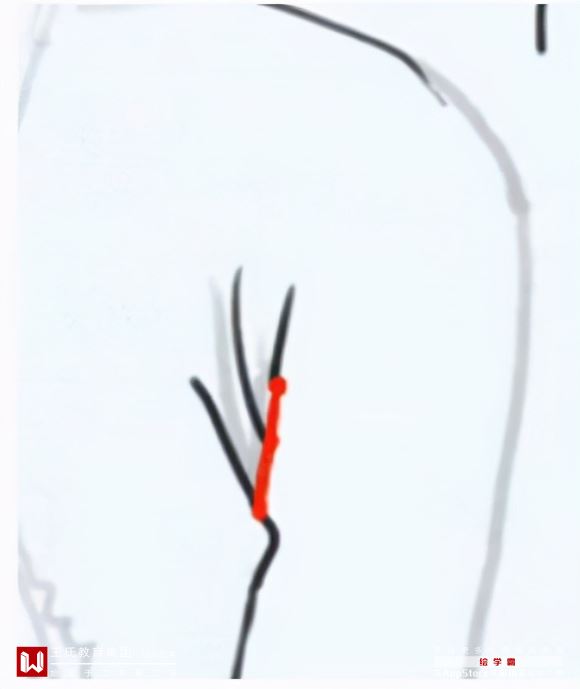 1段是贴着肉产生的,2段是一个趋势,3是受左边方向向上拉扯的力