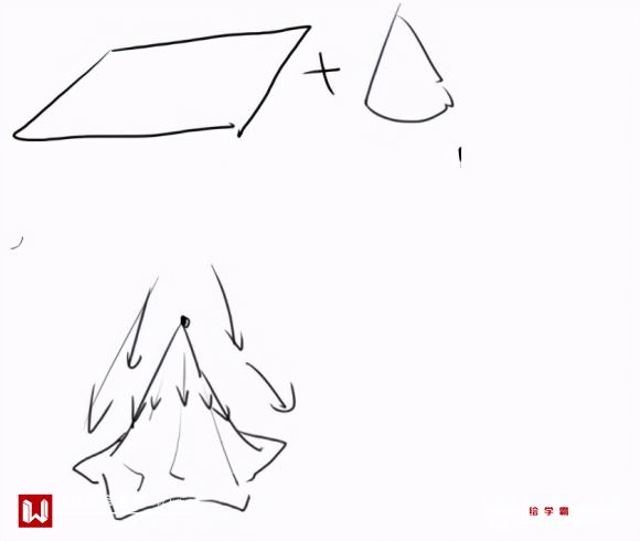 会出现一个这样的褶皱。那它是怎么产生的呢,就像一块布罩在圆锥体上一样。