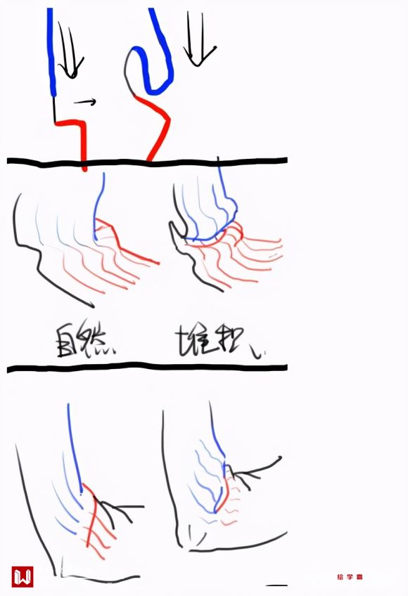 所以腋下的褶皱应该是这样画: