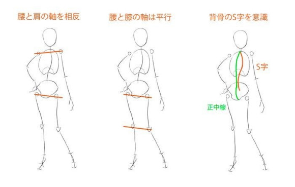 而且,臀部和膝盖的轴似乎是平行的。当意识到脊柱的S形时,如果您还意识到躯干前面的中线,则可能更容易导致对三维的理解。