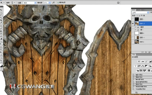 骷髅盾牌贴图绘画教程丨3dsmax游戏道具贴图制作教程丨3dmax+zb=sp次世代武器纹理贴图材质渲染丨次时代道具贴图制作