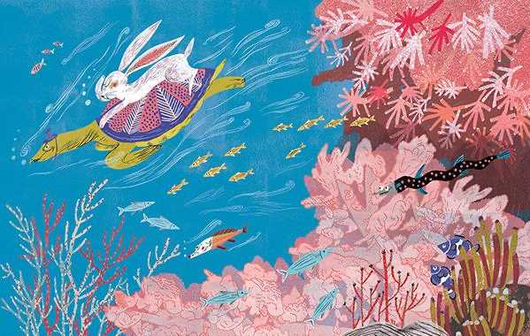 绘本讲述了韩国民间《兔子和龙王》的故事~画面内容丰富饱满,插画设计充满想象力,拟人化的动物形象经过插...