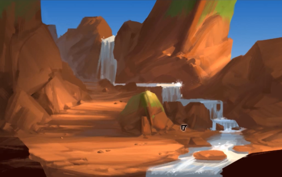 PS高山流水场景绘画教程丨板绘插画风景教程 丨CG场景气氛板绘教程