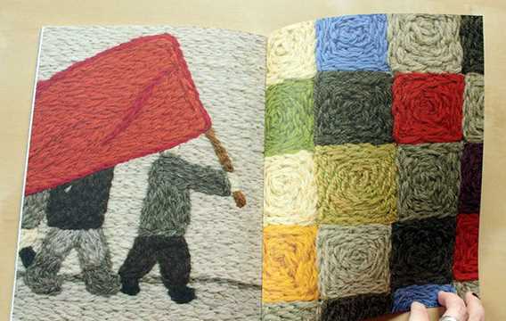她使用了毛线材质来表现她的作品,颜色艳丽,形象充满童趣,而刺绣的质感又带给读者一种十分温暖的感觉。...